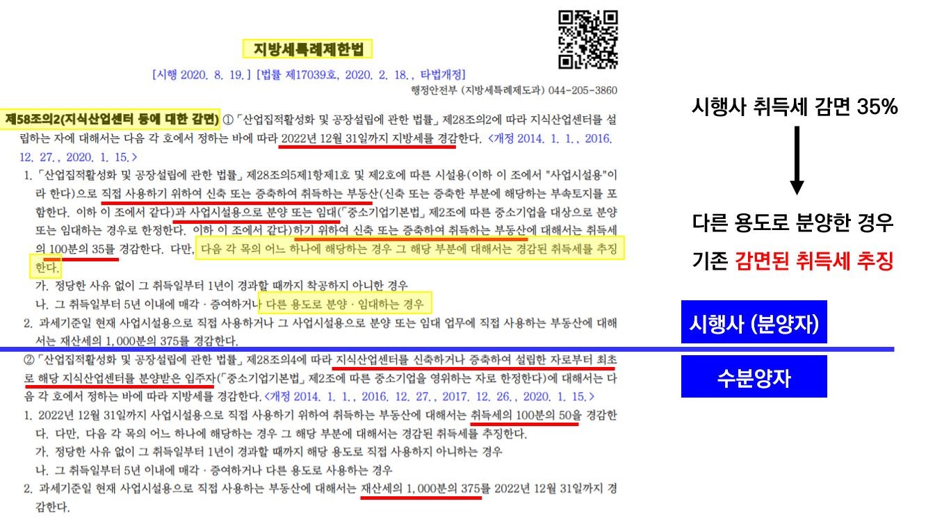 지식산업센터의 취득세 감면 추징 사례 (시행사, 수분양자)