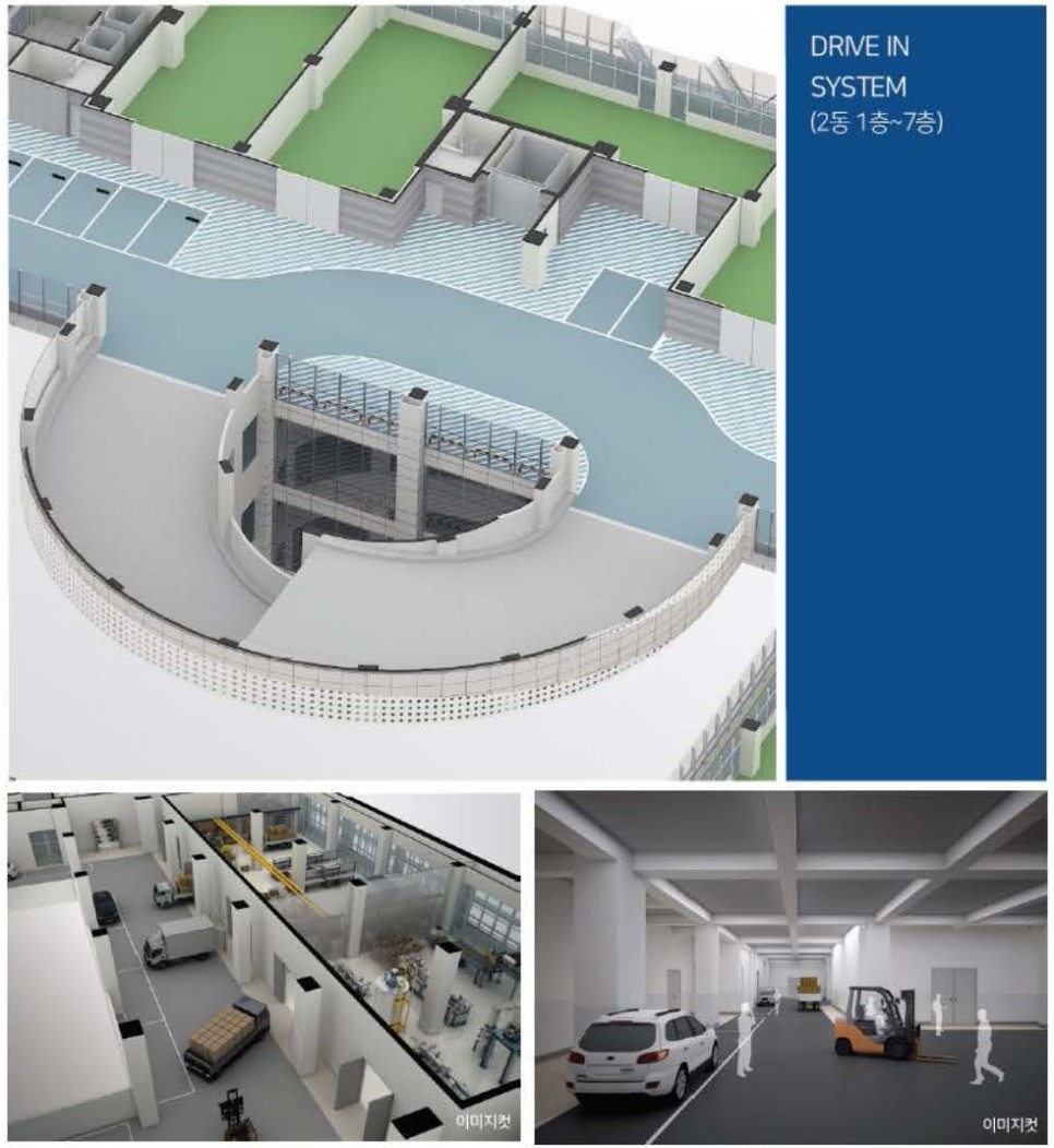 본 지식산업센터는 최대 층고 6M의 높은 층고와 ㎡당 최대 1.2톤까지 견딜 수 있는 바닥 하중 설계로 중장비 사용 및 고중량의 화물 적재가 가능하며, 1F부터 7F까지 드라이브인 시스템 설계로 입주자 및 방문 차량의 편의성을 더했다.