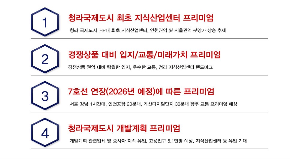 청라 국제도시 최초 지식산업센터 랜드마크 및 향후 7호선 연장(예정) 등 개발계획에 따른 프리미엄