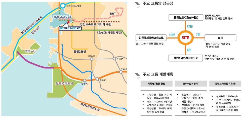 서울 강남 1시간대, 인천공항 20분대, 가산디지털단지 30분대 생활권